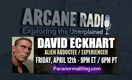 Join me as I welcome alien abductee and experiencer David Eckhart to Arcane Radio. Over a decade ago, David and his family began to endured numerous abductions and close encounters in their home near Pensacola, Florida. The encounters have continued, though the activity has recently picked up in intensity. David's ordeal has been thoroughly documented because of his determination to discover why he was chosen. I have assisted David in his journey since 2010. His story was presented on 'Fact or Faked: The Paranormal Files' which resulted in one of the series highest rated episodes, namely because the team could not debunk David's claims. This is the 1st time that I have publicly interviewed David. It's time for the truth to be disclosed LIVE! Please be advised: some of the information may be too intense and graphic for certain individuals. This should be a very informative show! Join us this Friday, April 12th at 9PM ET / 6PM PT on ParanormalKing.com - Meet us in the chat room...just click the banner or go to www.paranormal.olicentral.com