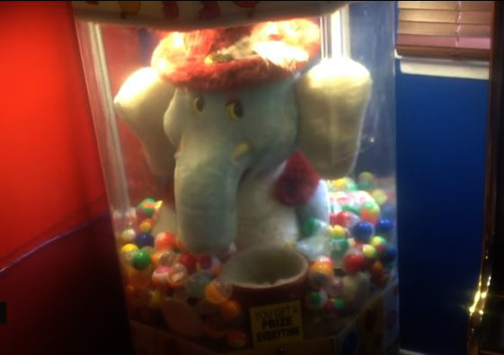 Hi, I had a weird experience a few years ago. The mall was mainly closed as it was 11 pm, and my friend and I were leaving to go home. Most of the stores had metal blinds on them and one particular store had the vending machines outside the blinds. They were switched off. One of the machines was a large elephant, in a class case which said 'Hello' as you put in a coin for the gum.