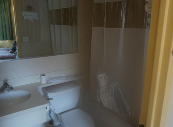 As I stood at my bed's edge I heard the shower running. And I at first thought it was next door then I noticed the bathroom door open. I kept it shut most times in my hotel rooms. Always have. As I walked to the bedroom door and pushed it open, I looked in. At first I looked at the shower head and noticed no water was coming out. Then as I looked down I felt as if I was being watched and I saw HIM sitting in the tub. He turned his head more my way and he was looking right at me. Oh my God! I freaked out and ran straight down the stairs and into the office. Nothing but my boxers on. That was it. I stood there trying to tell them there was a ghost in my room and before I knew it, a blanket was tossed on me and a lady was telling me to have a seat in the breakfast room asking if I like coffee or hot chocolate. The other lady telling me that I was okay and that they would have me moved to a ground level room ASAP. No small talk. I was mind blown. This is a 100% true story.”