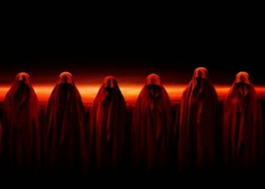 Red-Robed Figures in Church Lot
