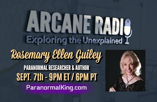 Join me as I welcome paranormal researcher and author Rosemary Ellen Guiley to Arcane Radio. Rosemary is a full-time researcher and author in the paranormal and body-mind-spirit fields, with more than 65 books published. Her work embraces paranormal and unexplained phenomena, cryptids, UFOs and alien contact, spiritual and psychic skill development, angels and spirits, spirit communication, afterlife research, dreams and dreamwork, reincarnation and past lives, and other topics. Her most recent books include 'Contact with the Dead' and 'Mysteries of the Afterlife.' Rosemary's website can be found at visionarylivingpublishing.com. This should be a very informative and entertaining show! Join us this Friday, September 7th at 9PM ET / 6PM PT on ParanormalKing.com - Meet us in the chat room...just click the banner or go to www.paranormal.olicentral.com