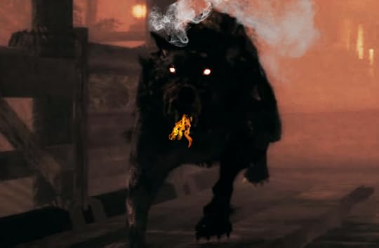 A couple weeks later I was driving alone one night down a dark country road that I would usually cruise on the weekends. Everything was normal when I noticed something moving just out of the beams of the light of the car on the edge of the road as I drove. I slowed down and was shocked to see what was revealed by my headlights. It was that dog again but this time it was running alongside my car as I drove. I was terrified when I suddenly remembered that the speed limit for this road was 70 mphs. This thing was keeping up with me. It was exactly like I had seen it before. A large black mass with smoke coming off of it. As I glanced back and forth between the road and it, I slammed on the brakes. When I turned to look at it, it's head was backwards, not turned, and it was looking right at me with glowing white eyes. I'd never been more afraid in my whole life. I immediately did a U-turn and hauled ass back into town. I was shaking the entire way home. Was what I saw a Hellhound or something else? Are these things associated with death? My grandfather passed shortly after these events. I've spotted the dog a couple of times since then while driving but but only for a brief moment as I passed it.”