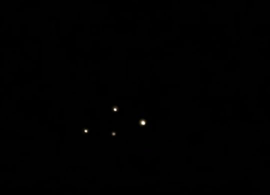 Tonight My mom and I saw the same or a very similar set of lights. We were driving to our house when I saw a light that was slowly pulsating. Eventually it disappeared. Not long later I saw the light again but this time instead of pulsating it multiplied to five lights that were aligned to each other. Not long later another set of lights appeared not far from the first set of lights. Together they looked like a upside down V. Not long later both sets of lights disappeared.