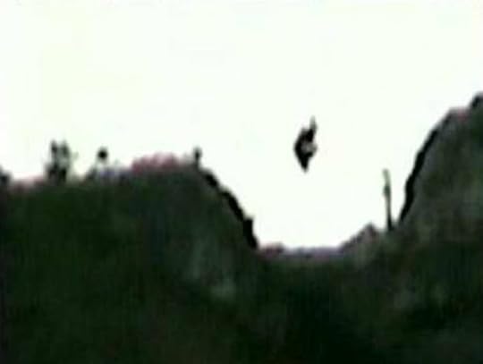 The creature bent down to the ground and jumped forward on all fours then got up a bit and turn to the left to aim for the woods. It reached for the ground again with its front arms and jumped forward with its back legs swinging in front of it like a rabbit.