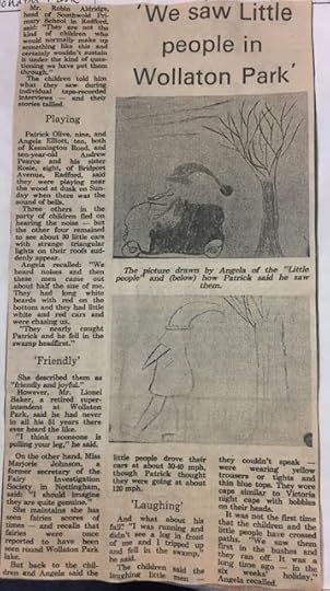 Furthermore, once it became public, other local people came forward to claim that they too had spied these mini-motorists in the park, especially near the lake, and Marjorie Johnson, a former secretary of the Nottingham-based Fairy Investigation Society, confirmed that she had recieved a number of previous reports of Little People frequenting this locality". - Fortean Times #34 (Special 2005 Edition)