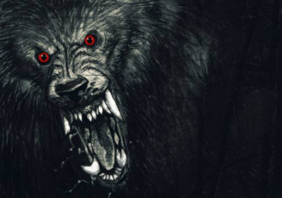 It was about 10 feet away, with it’s back to us, lurking near my shed. We both froze. and did that thing where you take a quick breath and hold it, involuntarily. That made the creature notice us. It’s head whipped around, and his eyes were glowing, a kind of blood red. It didn’t look angry per say, but rather like a feral dog, not knowing how to react to these two little girls observing it. Almost as if not to scare us, he slowly rose up to full size, which I would guess was around 7 feet. The whole time, it never broke eye contact. I felt I could fall into the pits of blood that it’s eyes were. It was covered in long shaggy black hair and had the legs like that of a beast. After standing there, frozen in horror, for at least a full minute, all the while still in this staring contest, we both regained control of our feet and ran up the stairs screaming for my parents. “We saw a werewolf, we saw a werewolf!” My dad went out first, and we followed. My dad quickly dismissed it and went back inside, a bit disgruntled. I could have sworn I saw a bush where it was near move.