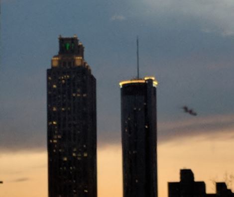 When I realized that the object was not a wayward kite, I thought about reports of flying humanoids. However, the protrusions didn't seem to fit with what was described in those accounts - additionally there was a brief metallic flash as light from a lamp post reflected off of the object - this does not seem to fit with the description of flying humanoids either. Other than the brief metallic flash the object was entirely black. The closest the object's path took it to me was about 120 feet and I was able to observe the object for about 2 minutes, so I had ample opportunity to try to identify the object and for the life of me I cannot think of anything that this object could have been. Even after going home and doing a Google image search for UAVs nothing I have ever seen can match up with the description of this object. My reaction to this object was initially one of pure curiosity until after I had dropped my friend off at his place, then I became extremely nervous and scared.