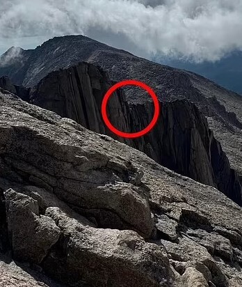 Jessee Clauson, 29, and Camille Avarella, 28, were descending Longs Peak in the Rockies when they unwittingly caught the lanky gray creature on camera as it appeared to scale the crag.