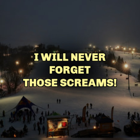 I looked back at the trail hoping for a ski patrol person to wave down but I was alone. I started to enter the run but just couldn't seem to cross the rope. I know it was fear that stopped me but I had no obvious reason to fear. I was an expert skier. I knew the trails. So gritting my teeth, I worked my way onto the trail but could not get myself to go into the dark. I turned away and felt shame as the fear grew more intense and made me stop in my tracks. Looking around once more, I confirmed I was still alone. Then almost as if a casual act, I twisted and then shouted my niece's name into the darkness. Immediately two children's voices came from the woods. They screamed in terror, one of them shouting that it was killing them. As the screaming continued I stood there in shock, unable to breathe or move. As quickly as they had come, the screams stopped but I thought I could hear whimpering just over the sound of the trees rustling in the wind. I must have shouted incoherently and moved before my mind began to fully function. I realized I was turning and facing the woods, pointing forward before my mind once again screamed for me to stop. There was something wrong with this situation but I was at a loss for understanding any of it. I just knew I was going into the dark and I would be alone to face whatever was happening to those children. Regretfully, forlornly, I looked back up the trail and with relief, saw a ski patrol coming my way. The whimpering stopped.