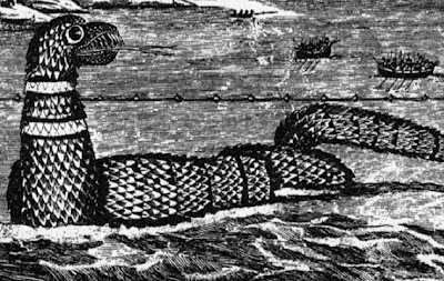 In a compilation of sightings printed in the Boston Weekly Messenger, it was further reported that the creature was sixty to seventy feet in length, that it was about as wide as a barrel, that it moved rapidly in a serpentine fashion, that it was able to double back upon itself instantaneously, that it was: