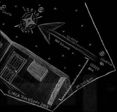 A few days later I was playing in my backyard with my brother when I began hearing a very hard knocking sound coming from the side of our house. I looked at the house and saw nothing and my brother continued playing. The sound hit the house again and I looked again and saw nothing. This horrendous loud sound (that I suppose only I could hear) hit the house again. For the third time, I heard the loud sound again. Except this time I had this feeling to turn my head to the left facing our garage by the woods.
