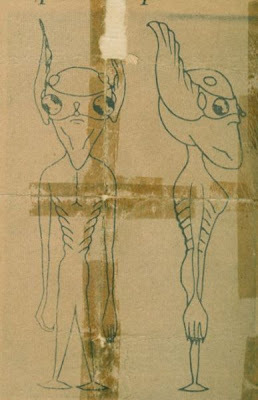 We thank those who, at some risk to themselves, have been feeding us UFO and extraterrestrial information. One of our informants recently sent us this rough sketch (above) of a member of the very real race known as the Axthadans or Ax Thadans.