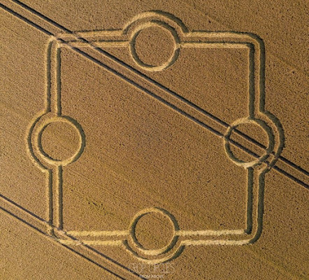 This formation is the second to appear near Stonehenge this year after a weird 'starfish' design was discovered in late June. Read more at Normanton Down Barrows, Nr Stonehenge, Wiltshire. Reported 14th July