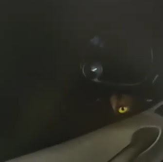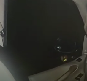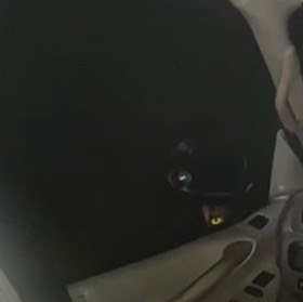 Apparently, there seems to be a canine creature raising its head up to the window where the eyes, along with eyeshine, can be seen. In the background, there are howling sounds in the distance. later in the video, it seems that other unknown creatures have approached the truck.