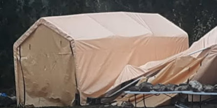 "This 'visitor' became a regular thing, taking apples, pears, plums, corn, and pomegranates. My hairy friend was prowling around at night. At 2 AM: in the morning. Well, just 2 days later, the first building was literally crushed from above. See the photo. Not elk, no hoof prints. It just flat-out crushed it, leaving the one beside it intact and untouched. The next day the other one was crushed from all the outside walls inward.