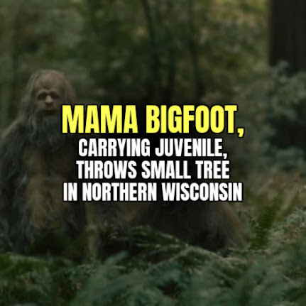 MAMA BIGFOOT, Carrying Juvenile, Throws Small Tree in Northern Wisconsin