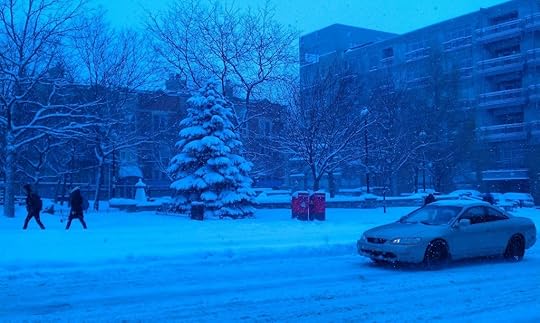 Montreal is a Canadian city, kind of on the small side (give or take 2 million people) and yes, it speaks French. French is the only official language of the province of Quebec, but in the heart of Montreal you can usually get by in English too. Montreal is known for a kind of libertine attitude and what we call joie de vivre—you gotta, when it’s freezing nine months of the year. I took this picture in the middle of April, after I woke up to a surprise snowstorm (surprise!).