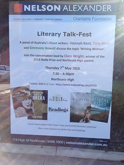 This Thursday I will be talking on a panel alongside Stella Prize-winning Clare Wright, Tony Birch, Omar Musa and Simonne Howell at Northcote High School. The event, part of an inaugural Literary Talkfest for Northcote H.S., will be a discussion on 'Writing Women', and promises to be a wonderful night.