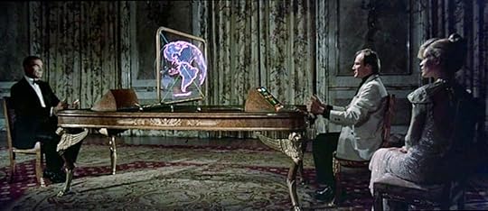I'll cut to the chase. The gambit is that Blofeld, and therefore SPECTRE, are stealing space ships. First they steal an American one, which the Americans naturally blame the Russians for. Then later they steal a Russian one, because of course the Russians will blame the Americans. Why? Because obviously this will result in a nuclear war! Let me just hammer this home: The evil plot is that Blofeld will develop IN SECRET and entire space program, run out of a fake volcano in Japan, and what he plans to do with his amazing technological accomplishment is hijack American and Russian space capsules... because clearly that will send the two superpowers over the brink of nuclear armageddon. To what end? It's not obvious? Because once they've destroyed each other, SPECTRE will rise to take their places as the de-facto post-apocalyptic worldwide bad-ass regime!