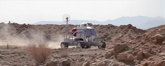 The dreaded moon buggyThen there's the voice changing nonsense. And Blofeld's many clones. Blofeld himself is of course as cheesy as can be, stroking his cat while he hatches diabolical schemes. But I rolled my eyes most at the point when Bond simply calls Blofeld up on the phone and, thanks to Q's voice-changing device, Bond perfectly mimics one of Blofeld's henchmen and gets the critical information they all need. Anyone could have made that phone call, no need for the dashing superspy, plus it rendered virtually everything that had happened before that a waste of time.