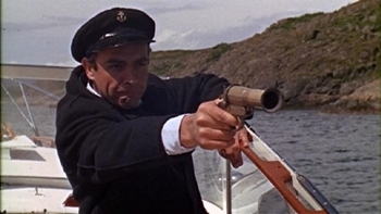 There's something about this half-second bit of the movie I love. The way Connery pauses to really dial-in his aim. It's one of those super subtle moments in a film that you realize later really sell the reality of the situation.Compared to the horribly cheesy boat chase in Live and Let Die, this one was (for it's era) rather enjoyable and well filmed. Given the lack of action in the book, and the aforementioned anti-climax, this little added bonus was welcome.