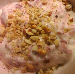 Then take out of the freezer and enjoy! Again, you can add a teaspoon of chopped nuts over the top for texture and who doesn't like chopped nuts!