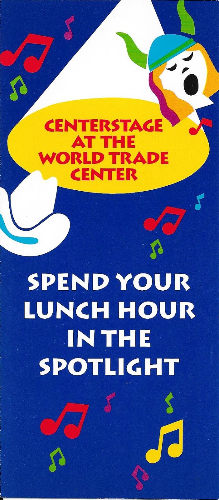 By the next summer, I had been firmly ensconced in a new job up on west 34th Street. Lunch-breaks were infrequent at best. And the Trade Center was now a good 25 minute commute. Mike still worked downtown and would often call me to meet him for the ’96 concert season. He mailed me a tri-fold pamphlet (which I still keep to this day) listing all the shows including Opera Mondays, Swinging Tuesdays, Jazz Wednesdays, and Country Fridays. But only Oldies Thursdays held any appeal to us. Just once was I able to escape work that summer. And that was to see a revamped lineup of The Mamas and the Papas featuring Papa John Phillips and a trio of non-original members. Uninspiring as the performance was, it was still great to bond with Mike and get away from my desk for a mini-summer vacation. Hard to believe that this would be my last time standing in the formidable shadow of the soaring Twin Towers.The summer concert series continued to draw large lunchtime audiences right up to the tragic morning of 9/11. An afternoon show had been scheduled there for that very day. One which would obviously never be played.When I gaze upon the skyline of lower Manhattan today, my heart aches for what is no longer there, rather than to admire the structure that stands in its place. So much of our youth, our past and our history was robbed from us on that fateful September Tuesday morning. That and the lives of nearly 3,000 New Yorkers, some of whom I likely rubbed shoulders with down on Austin J. Tobin Plaza on those warm summer afternoons.