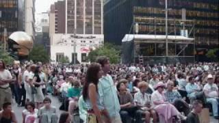 It was a beautiful August afternoon when Mr. Checker took the stage between the towers for his summertime spotlight. A strong crowd filled ¾ of the standing room on the plaza. And things got off to a roaring start with his biggest song, The Twist. Hundreds of New Yorkers were clapping and swiveling their hips. Next came his follow-up hit, Lets Twist Again, also fondly received. And then… the singer – apparently short on worthwhile material - elected to repeat the same two songs twice more. And this just to round out the opening set! A good portion of the early crowd left, looking perplexed during the first repeat. Later arrivals headed for the exit after the second duplication, leaving just a handful of spectators to take in the 1:15 show. The confused faces of the departing fans summarized the shortcoming of this sometimes limited format. Especially when the headliner was a legendary two-hit wonder.