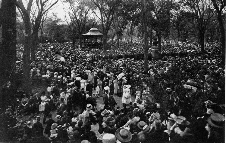 During the ensuing decades, big-band shows became a popular park attraction. Edwin Franko Goldman's Concert Band began performing on the Mall in 1923 at the newly built Naumberg Bandshell. From 1934 until the early ‘60s, the finals of a citywide Barbershop Quartet contest were held with great fanfare on the Mall area. And in 1968, some 8,000 girl scouts assembled in Sheep Meadow to sing Happy Birthday to composer Irving Berlin on the occasion of his 80th birthday.