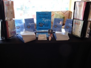 Ready to sell! “What Mamma Says” greeting cards on display, too, featuring one-liner excerpts from my book. Bought a square reader attachment for my iphone for charge and debit card purchases. Very cool!
