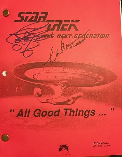 Almost 20 years ago my aunt gave me a copy of the script for the Star Trek: The Next Generation series finale "All Good Things…". Fast forward to today and my very awesome cousin returned from New York Comic Con with that same script signed by the likewise Levar Burton and Michael Dorn.The friend who stood in line said that Mr. Burton (Levar? We go back to my Reading Rainbow-watching days in the 80's, after all #ButterflyInTheSky4Life) was impressed to see the script. It's always a thri...