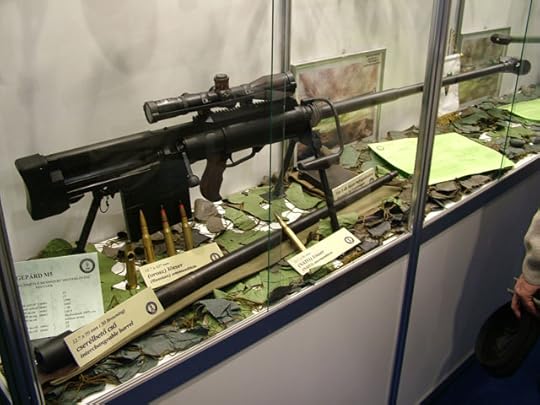 The Russian standing in front, a wiry, beak-nosed man with tattoos crawling up his neck, lifted his Skorpion machine pistol with a leering grin just before the first .50 caliber bullet smashed through the window and took the heavyset thug behind him in the head.