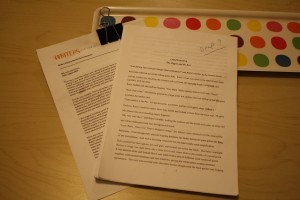 My suitably coffee cup ringed ninth draft of Ruby Marvellous and a copy of my manuscript assessment from the Writers’ Centre.