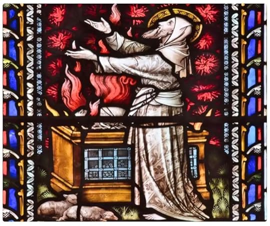 This was all very bloody, messy business. Priests wore very little as they did this, unlike the stained glass window of Aaron above. The vestments most priests wore during the actual sacrifice were loin clothes. (High priests would wear special vestments in certain occasions but these were constantly in need of being replaced because it was so hard to get the bloodstains out of the vestments.)