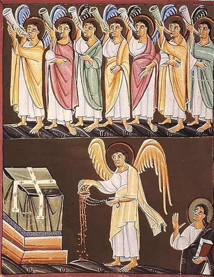 When reading early Christian texts like the Apocalypse, it is a rule of thumb that the animals and monsters we meet are there to stand in for people that the original readers might recognize–for instance, Roman emperors like Nero. Human figures are to be understood as angelic beings–like the “young men in white” who announce that Christ is risen to the women who meet them at Christ’s tomb. But figures who are introduced as angels–who are they?