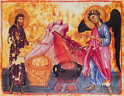 In Christian folktales, Uriel plays a role in the rescue of Jesus‘ cousin John the Baptist from the Massacre of the Innocents ordered by King Herod. St. Uriel carries St. John the Baptist and his mother Saint Elizabeth to join the Holy Family after their Flight into Egypt. This family reunion is depicted in Leonardo da Vinci‘s Virgin of the Rocks.