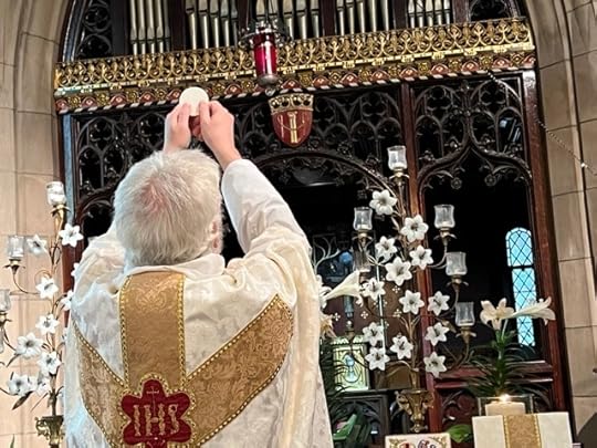 We should-we must carry the Eucharist in procession to celebrate that God is with us. Even here. Even now. But we should-we must examine ourselves, turning ever more completely toward the God who gives himself for us. Even here. Even now. And we should-we must forgive and embrace the neighbor that we find beside us—whether we like them or not—if we hope to experience the NOW of eternity as abundant, inexpressible joy. Even here. Even now.