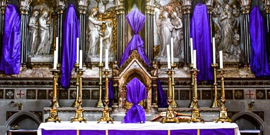In western Christian liturgical practice, the last two weeks before Easter were commonly known as “Passiontide.” The statues and crosses would be veiled. Some think this dates from a time when Lent was itself only two weeks long and that the images were therefore veiled for all of Lent. Some think that as Lent became longer–finally becoming the 40-day fast it is now–that the statues and crosses were veiled for all of Lent. Practices varied a great deal across western Europe. In some places the crosses were covered on Ash Wednesday; in others on the first Sunday of Lent. In England it was customary on the first Monday of Lent to cover up all the crucifixes, images of every kind, the reliquaries, and even the cup with the Blessed Sacrament. In other places, veils were still only used during the two weeks of Passiontide itself.
