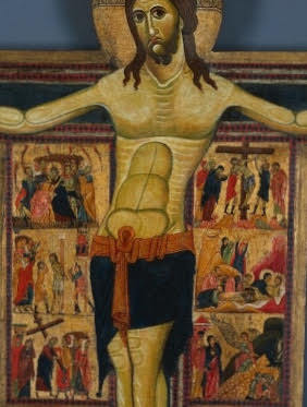 A beautiful example of Christ Triumphant on the Cross from 13th century Pisa–currently in the collection of the Cleveland Museum of Art–can be seen here.