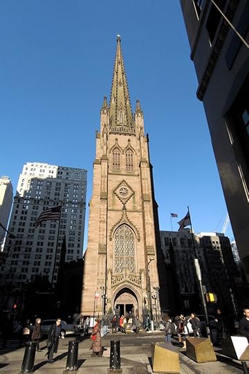 Wall Street leads directly to the front door of Trinity Church in New York City. Trinity Church is an Episcopal church that was founded by royal charter in 1697. The first church was on Wall Street facing the Hudson River.
