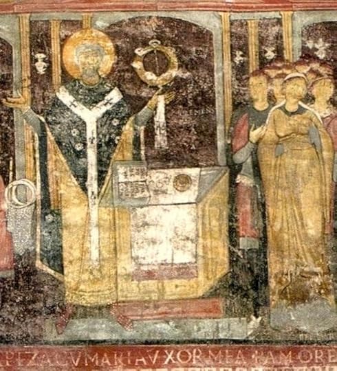 Taking a collection of some sort was standard practice at the Eucharist. Offerings (prosphora, in Greek) were a sign that the people making the offering had given themselves and their whole lives to God. The prosphora—food, clothes, money—collected for the saints was an important expression of fellowship, whether the people (“the saints”) receiving the prosphora were local or far away. Making an offering—bringing prosphora—to the Eucharist was an expression of fellowship with the needy saints on earth as well as with the glorious saints in heaven.