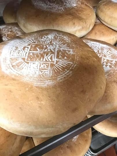 That the Virgin is presented when she is three-years old relates to the expectation that children were weaned at that age and the prophet Samuel was given to the priest Eli when the boy was three-years old. Heifers and other animals to be sacrificed were also three-years old when given as offerings to God. The archangel Gabriel is said to bring her bread from heaven because she eventually gives birth to the Living Bread, the True Bread come down from heaven. In the meanwhile, she is sustained by a rich life of prayer and devotion to God.