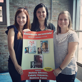 Dedikálás után pózoltunk a plakátunkkal Zakály Vikivel és Helena Silence-szel, és mosolyogtunk rendesen.