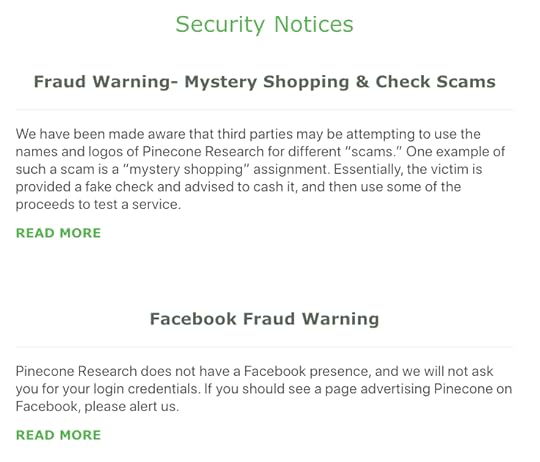 Beware of false reviews of the platform. Research shows several sites have tried to copy their format in the past. These sites have also been operating under similarly named domains. Some of the reviews you see may be for these copycat sites and not the real Pinecone Research.