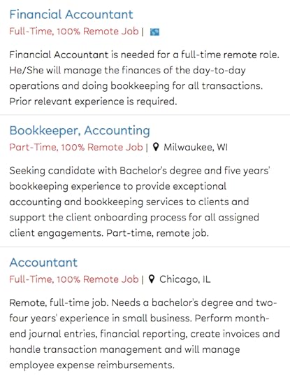This sampling of remote accounting jobs should give you a sense of the work Alice would do for a living: