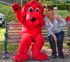Totally adorable photo!Today I'm happy to welcome another New Zealand librarian, Amanda-Jane McFadden. I stalked Amanda-Jane on Twitter (@amandajanemcf) and fortunately didn't freak her out too terribly bad. Because she agreed to an interview! I can already tell this is going to be great judging by that big red dog hanging out with her on a park bench.