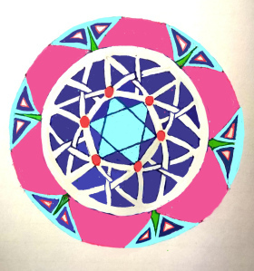 As I’ve begun to pick up threads of habit and find ‘normal’ life again in the last week, I’ve taken up mandalas. Jung used them with his patients not only diagnostically but therapeutically. Having noticed their appearance in many cultures and creeds, he went on to find mandalas a useful tool for centering and ordering the personality internally and situating it cosmically: