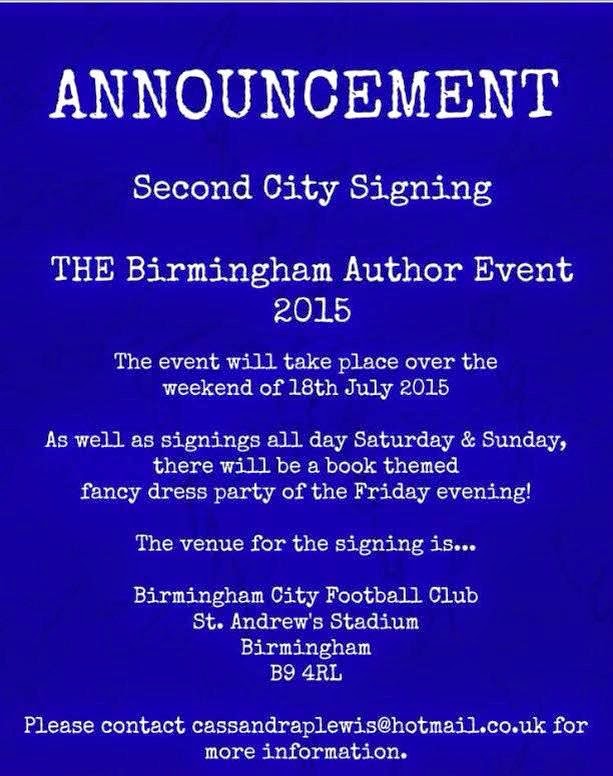 I am pleased to announce that I have secured a spot at the Second City Signing in Birmingham next year. This is going to be my first author event, and while I am so excited, I'm going to be a nervous wreck between now and then.
