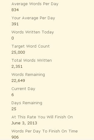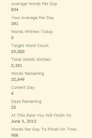 Yeah, never gonna meet my 25k target!I also need to think of a title, as I don't think Freedom to Fly works anymore. I SUCK at titles.