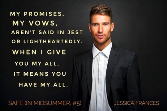 Carved features that remind me equally of Greek gods and angels, eyes the deep blue hue of a lapis lazuli stone, framed by stylish horn-rimmed glasses. Lips that beg to be kissed. Shaggy jet-black hair, with a stray strand that falls in the middle of his face and just begs me to walk over and brush it back—which I’d have to reach high to do because he’s at least a foot taller than me. Despite the warm weather, he’s dressed in a black trench coat with a black shirt underneath, an outfit that accentuates the powerful breadth of his shoulders and—